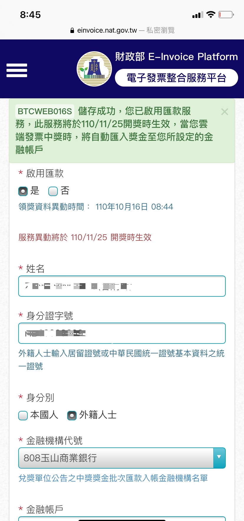 因為居留證有一部分人已經變成新的統一編號,在填寫的時候要填寫與您當初在銀行留的居留證統一編號哦。不要填新的,除非你的銀行賬戶的居留證統一編號已經更換成新的。